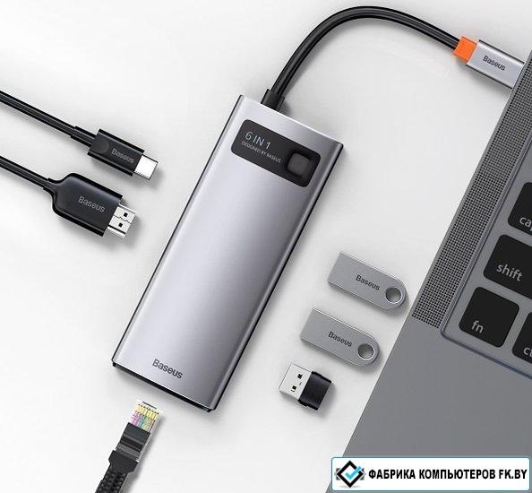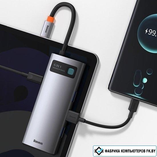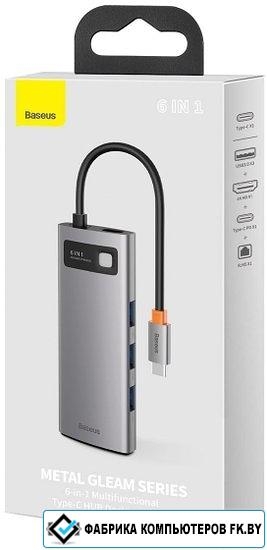 Док-станция Baseus Metal Gleam Series 6-in-1 Multifunctional USB Type C CAHUB-CW0G