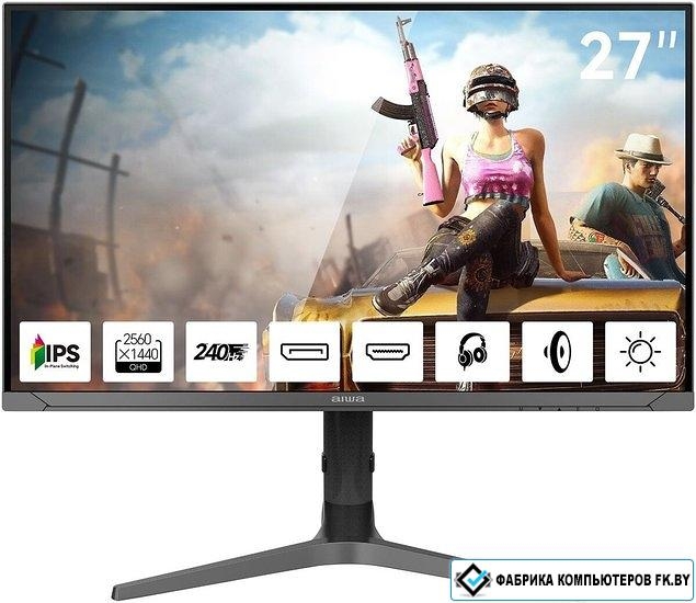 27", 2560x1440, 16:9, IPS, 240 Гц, яркость 350 нит, динамики, HDMI+DisplayPort, регулировка высоты, портретный режим