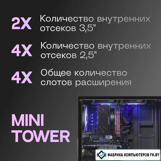 Mini Tower, для плат micro-ATX/mini-ITX, с 4 вентиляторами в комплекте, окно: закаленное стекло, вид..