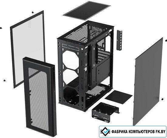 Mid Tower, БП отсутствует, для плат ATX/micro-ATX/mini-ITX, в комплекте 4 вентилятора, окно: закален..