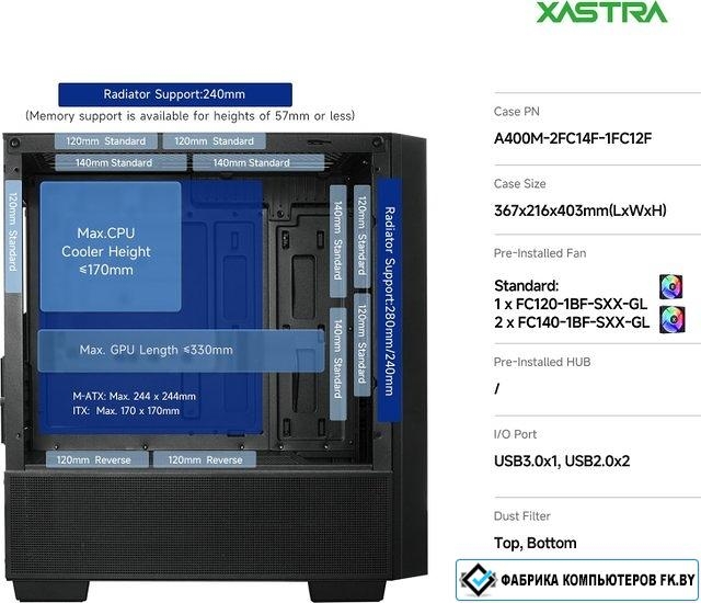 Корпус XASTRA A400M 3FRGB (черный)