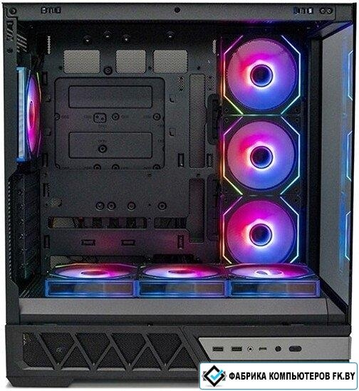 Mid Tower, БП отсутствует, для плат ATX/micro-ATX/mini-ITX, с 7 вентиляторами в комплекте, с контроллером вращения, окно: закаленное стекло, видеокарта до 420 мм, охлаждение ЦП до 170 мм, пылевой фильтр - сверху/снизу, 2xUSB-A 3.2 5Гбит/с, 1xUSB-C 3.2 5Гбит/с, цвет черный