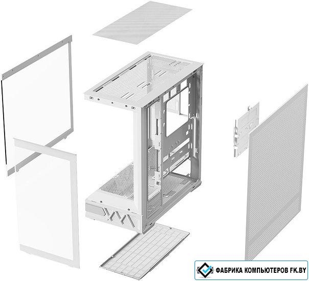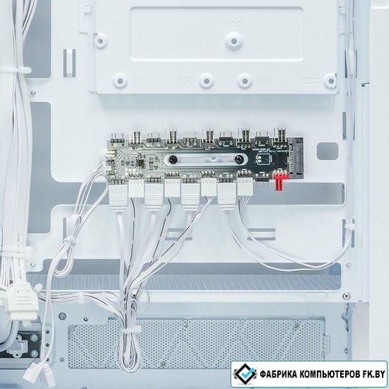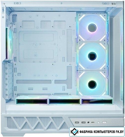 Mid Tower, БП отсутствует, для плат ATX/micro-ATX/mini-ITX, с 7 вентиляторами в комплекте, с контроллером вращения, окно: закаленное стекло, видеокарта до 420 мм, охлаждение ЦП до 170 мм, пылевой фильтр - сверху/снизу, 2xUSB-A 3.2 5Гбит/с, 1xUSB-C 3.2 5Гбит/с, цвет белый