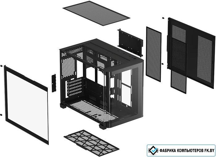 Mini Tower, БП отсутствует, для плат micro-ATX/mini-ITX, с 3 вентиляторами в комплекте, с контроллером вращения, окно: закаленное стекло, видеокарта до 445 мм, охлаждение ЦП до 160 мм, пылевой фильтр - сверху/снизу/сбоку (на одной из стенок), 1xUSB 2.0, 1xUSB-A 3.2 5Гбит/с, 1xUSB-C 3.2 5Гбит/с, цвет черный