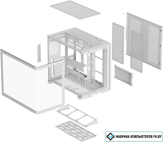 Mid Tower, БП отсутствует, для плат ATX/micro-ATX/mini-ITX, с 7 вентиляторами в комплекте, окно: закаленное стекло, видеокарта до 445 мм, охлаждение ЦП до 160 мм, пылевой фильтр - сверху/снизу/сбоку (на одной из стенок), 2xUSB-A 3.2 5Гбит/с, 1xUSB-C 3.2 10Гбит/с, цвет белый