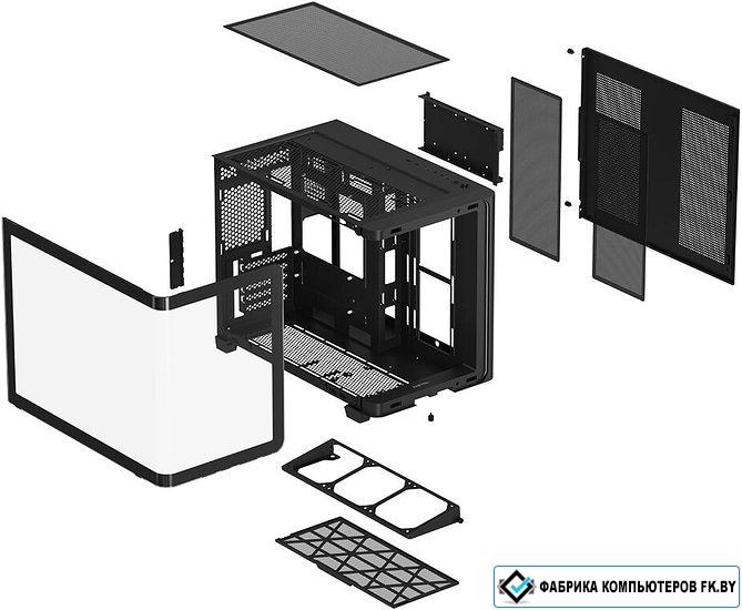 Mini Tower, БП отсутствует, для плат micro-ATX/mini-ITX, с 6 вентиляторами в комплекте, окно: закаленное стекло, видеокарта до 440 мм, охлаждение ЦП до 160 мм, пылевой фильтр - сверху/снизу/сбоку (на одной из стенок), 2xUSB-A 3.2 5Гбит/с, 1xUSB-C 3.2 10Гбит/с, цвет черный