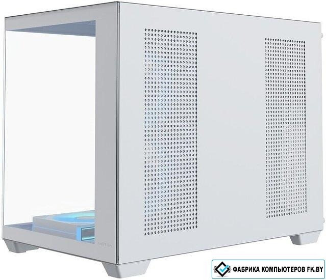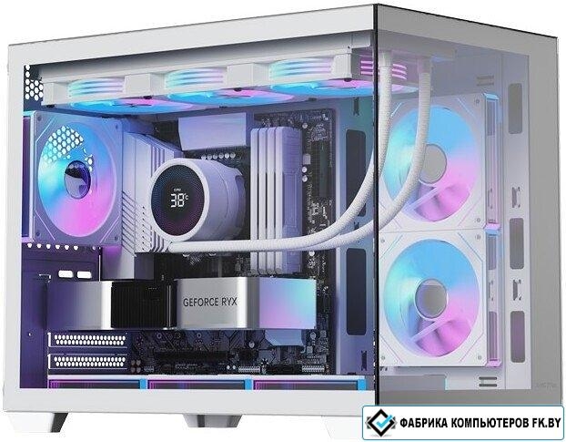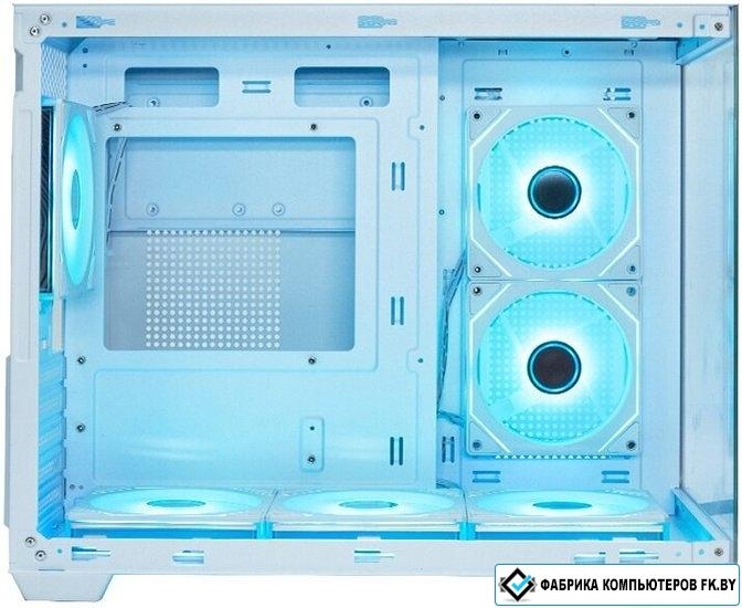 Mini Tower, БП отсутствует, для плат micro-ATX/mini-ITX, с 6 вентиляторами в комплекте, с контроллером вращения, окно: закаленное стекло, видеокарта до 410 мм, охлаждение ЦП до 165 мм, пылевой фильтр -, 2xUSB-A 3.2 5Гбит/с, 1xUSB-C 3.2 10Гбит/с, цвет белый