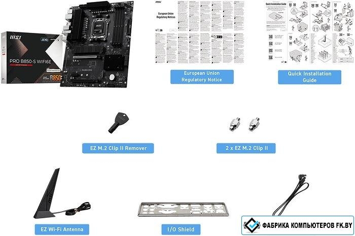| Комплектация | - кабель SATA- I/O планка - EZ Wi-Fi антенна- 2 винта EZ M.2 Clip II- EZ M.2 Clip II экстрактор- документация |