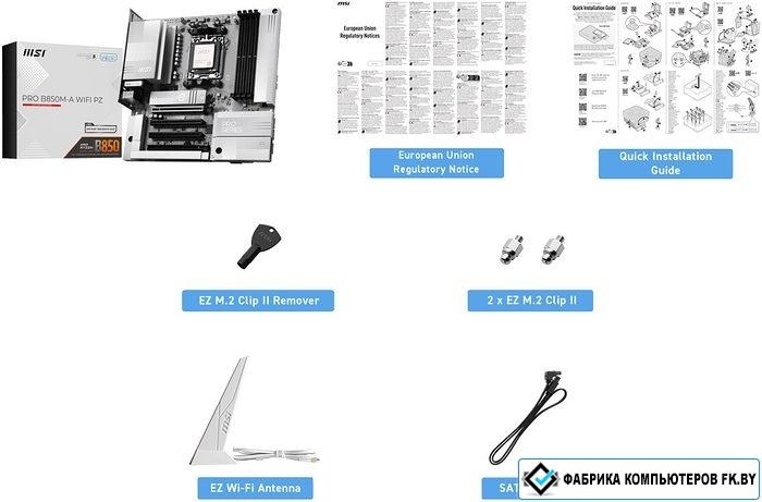 | Комплектация | - EZ Wi-Fi антенна- кабель SATA- 2 винта EZ M.2 Clip II- EZ M.2 Clip II экстрактор- документация |
