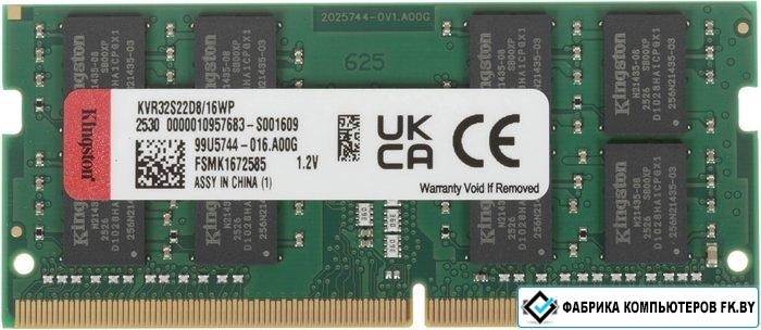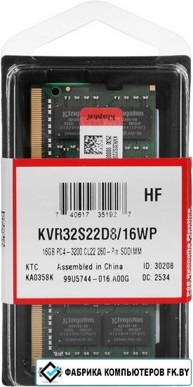 Оперативная память Kingston 16ГБ DDR4 SODIMM 3200 МГц KVR32S22D8/16WP