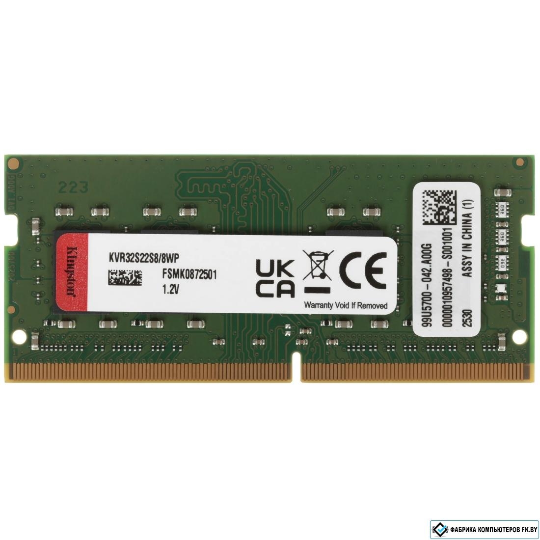 8 ГБ, 1 модуль DDR4 SO-DIMM, частота 3200 МГц, CL 22T, тайминги 22-22-22, напряжение 1.2 В