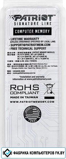 Патриот Мемору ЛЛЦ. 47027 Бенициа Стреет, Фремонт, ЦА 94538, УСА. Импортер: ООО «Мератех» РБ, пер. Липковский 12, каб.57. Страна производитель: Китай
