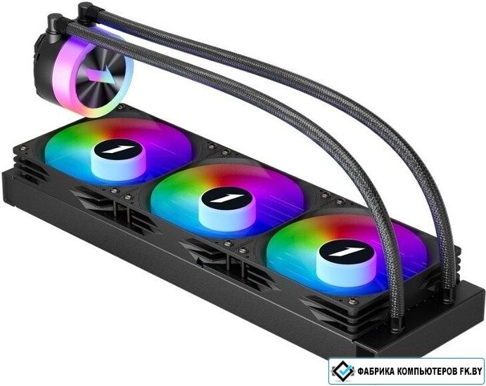 типоразмер 360, рассеивание до 350 Вт, высота 52.4 мм, вентилятор 120 мм, прямое направление потока, 1800 об/мин, PWM, подшипник гидродинамический (FDB), ARGB подсветка, макс. шум 36 дБ