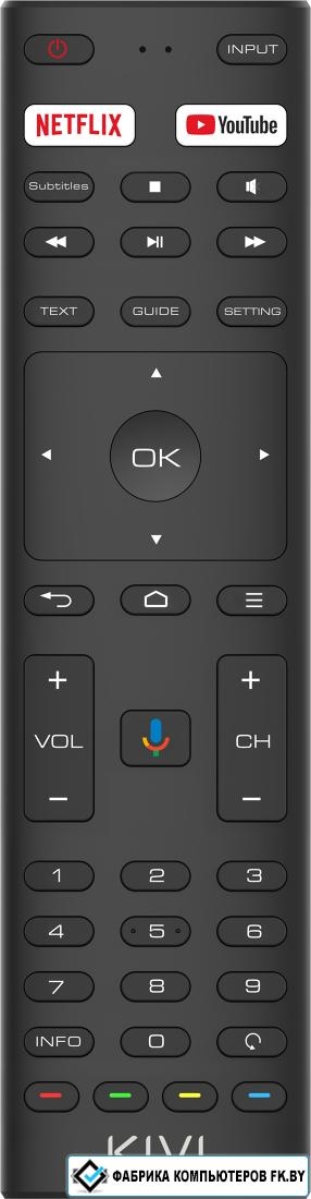 | Пульт в комплекте | KIVI RC20 – черный с голосовым управлением и кнопками Netflix, YouTube |