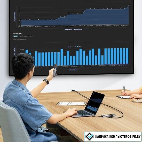 подключение по USB-C, 4 x USB-A, 1 x USB-C, корпус металл
