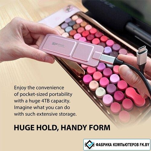 SSD, USB 3.2 Gen2 (10 Гбит/с), 1.8", металл, цвет розовый